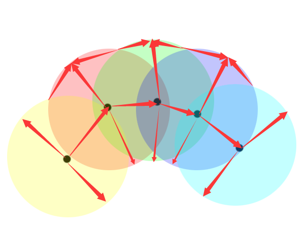 如图,除了首位两个点是取与相邻点的法线与圆的交点外,其余的点,取法如图所示,直接取两圆交点所在弧 间点,化成数学就是这样的算法:左右两点的法线所在线上取两点,这两点与中间点的距离相等