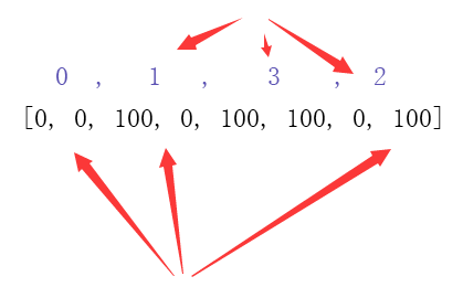 - indices 顶点顺序 Uint16Array,默认是[0,1,3,2],代表一个长方形的绘制,那么会被绘制成两个三角形,分别是 0,1,2 和 1,3,2 。而这里的顶点顺序则拿去代表 vertices 数据的顺序,简单用程序表示那就是: