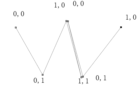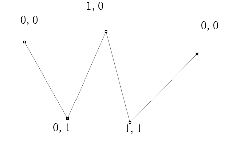 如果不进行反转,那么就会发生 1,0 | 1,1 | 0,0 三个点画了一个三角形,这个三角形明显就是贴图镜像效果,如何避免,我们可以在 1,0 | 1,1 这两个点的坐标上面直接加上 0,0 | 1,0。效果就等于在看不到的地方直接进行了反转,避免镜像贴图的出现,如图:(PS:这里的重复点可以用 indices 来实现)